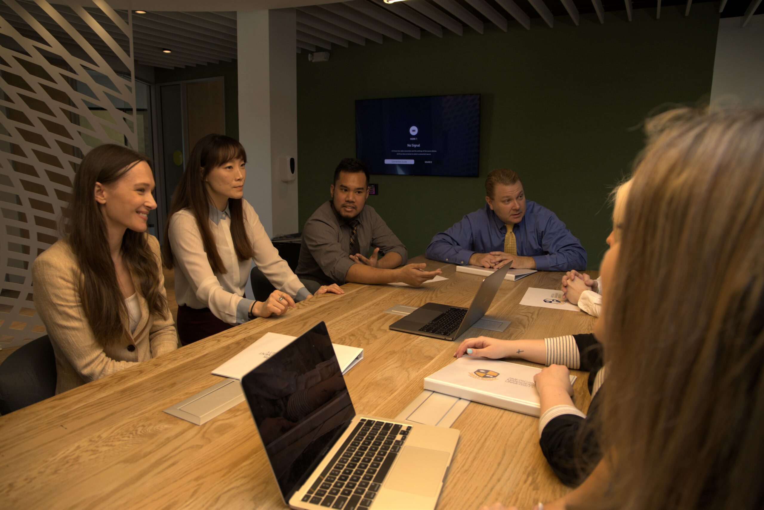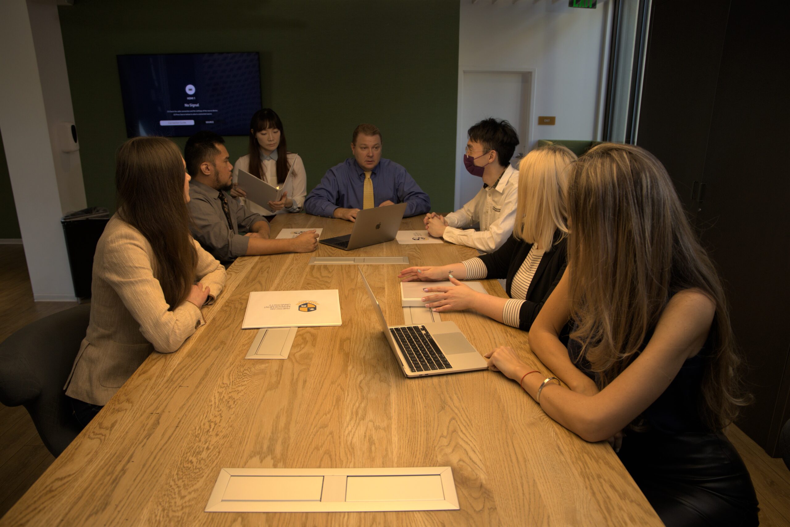 Upon completion of the case study module, students return to the boardroom to present their findings to the rest of the class and the instructor. We feel this helps to facilitate a more realistic environment as most modern organizations utilize teams, open workspaces, and meeting rooms.